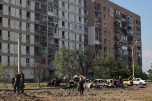 Police investigators work at a site of a Russian military strike in the town of Pervomaiskyi, amid Russia’s attack on Ukraine, in Kharkiv region, Ukraine July 4, 2023. REUTERS/Stringer