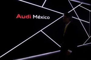 FILE PHOTO: A man walks past the logo of Audi during the opening of a new plant in San Jose Chiapa, in Puebla state, Mexico, September 30, 2016. REUTERS/Imelda Medina