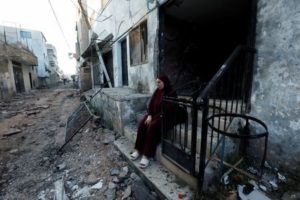 A Palestinian woman sits in front of a damaged building after the Israeli army’s withdrawal from the Jenin camp, in Jenin, in the Israeli-occupied West Bank July 5, 2023. REUTERS/Mohamad Torokman TPX IMAGES OF THE DAY