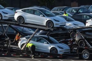 FILE PHOTO: Tesla Model 3 vehicles are seen for sale