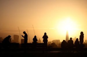 FILE PHOTO: People watch the sunrise behind the city skyline from the top of Primrose Hill in London, Britain, November 25, 2022. REUTERS/Henry Nicholls/File Photo