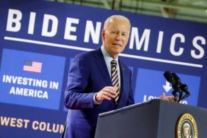 U.S. President Joe Biden delivers remarks on the U.S. economy and his administration’s effort to revive American manufacturing, during his visit in Flex LTD, in West Columbia, South Carolina, U.S. July 6, 2023. REUTERS/Jonathan Ernst