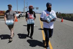 FILE PHOTO: Longshoremen with the International Longshore and Warehouse Union Canada (ILWU) carry bottled water to a picket line during a strike outside Roberts Bank Superport in Delta, British Columbia, Canada July 2, 2023. REUTERS/Chris Helgren/File Photo