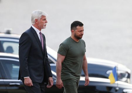 PRAGUE (Reuters) -Ukrainian President Volodymyr Zelenskiy called on NATO leaders to take concrete steps towards Ukrainian membership at a summit next week, and he received support during a visit to Prague from the Czech president, who backed Kyiv’s bid to join the alliance.