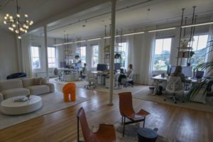 Employees are seen at venture capital firm Headline’s office at