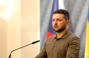 Ukraine’s President Volodymyr Zelenskiy and Czech Prime Minister Petr Fiala make statements to the press after their meeting in Prague, Czech Republic, July 7, 2023. REUTERS/Stringer NO RESALES. NO ARCHIVES.