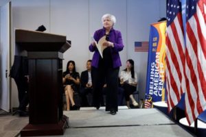 U.S. Treasury Secretary Janet Yellen attends a press conference at the U.S. embassy in Beijing, China, July 9, 2023. REUTERS/Thomas Peter