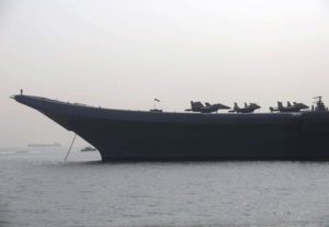 FILE PHOTO: Russian-made MiG-29 aircraft are seen parked on the flight deck of INS Vikramaditya, an Indian Navy aircraft carrier also of Russian make, anchored in the Arabian Sea off the coast of Mumbai, India, December 3, 2015. REUTERS/Shailesh Andrade/File Photo