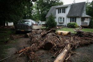 Debris from overnight flooding along Cedar Pond Brook is pictured in Stony Point, New York, U.S., July 10, 2023. REUTERS/Mike Segar