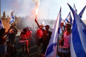 People block a highway to Jerusalem to demonstrate on ‘Day of Paralysis’ in protest against Israeli Prime Minister Benjamin Netanyahu and his nationalist coalition government’s judicial overhaul, July 11, 2023. REUTERS/Ronen Zvulun