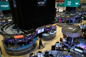 Traders work on the floor of the NYSE in New