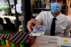 A man uses cash to pay for items while shopping in Milan, Italy, October 2, 2020. REUTERS/Flavio Lo Scalzo
