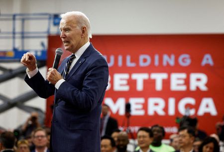WASHINGTON (Reuters) – U.S. President Joe Biden’s public approval rating held steady at 40% in early July, close to the lowest levels of his presidency, as economic worries continued to trouble Americans, according to a Reuters/Ipsos poll this week.