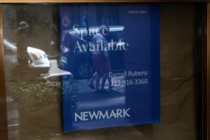 FILE PHOTO: A sign advertising space available is displayed in the window of an office building in the financial district of New York City, U.S., July 6, 2023. REUTERS/Brendan McDermid/File Photo