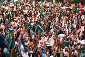 FILE PHOTO: Supporters of the Tehreek-e-Labbaik Pakistan (TLP), a religious and political party, chant slogans as they gather during a protest to denounce the desecration of Koran outside a mosque in the Swedish capital Stockholm, in Karachi, Pakistan July 7, 2023. REUTERS/File Photo