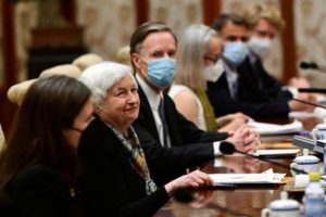 FILE PHOTO: US Treasury Secretary Janet Yellen speaks during her meeting with China’s Vice Premier He Lifeng (out of frame) at the Diaoyutai State Guesthouse in Beijing on July 8, 2023. Pedro PARDO/Pool via REUTERS/File Photo