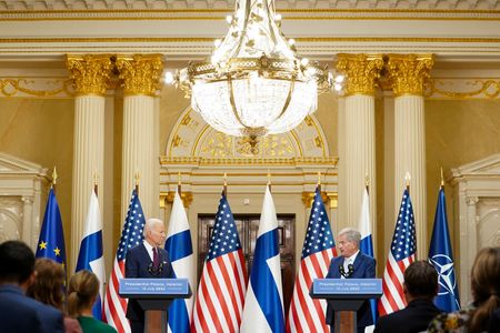 HELSINKI (Reuters) – President Joe Biden on Thursday gave his assurance that the United States would stay committed to NATO despite “extreme elements” of the Republican Party, in remarks during a visit to Finland to welcome it as the alliance’s latest member.