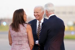 U.S. President Joe Biden is welcomed by U.S. Ambassador to Finland Douglas Hickey and his wife Dawn Ross, as he arrives in Helsinki, Finland, July 12, 2023. REUTERS/Kevin Lamarque