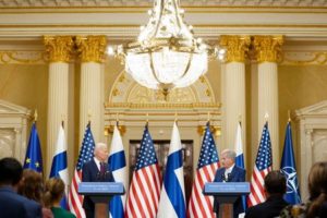 U.S. President Joe Biden and Finland’s President Sauli Niinisto hold a press conference in Helsinki, Finland, July 13, 2023. REUTERS/Kevin Lamarque