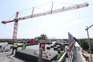 FILE PHOTO: Construction workers wear personal protective equipment as they continue working on a new building at University of Oxford Begbroke Science Park, in Kidlington near Oxford, Britain, June 16, 2023. REUTERS/Toby Melville/File Photo
