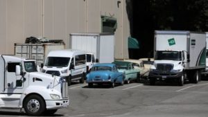 Vintage automobiles and transport trucks are parked in a back lot at North Shore Studios, a “Hollywood North” studio whose business is affected by rare twin strikes by Hollywood actors and film and television writers, in North Vancouver, British Columbia, Canada July 15, 2023. REUTERS/Chris Helgren
