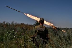 Ukrainian servicemen fire a Partyzan small multiple rocket launch system toward Russian troops near a front line, amid Russia’s attack on Ukraine, in Zaporizhzhia region, Ukraine July 13, 2023. REUTERS/Stringer