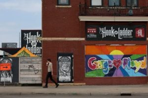 FILE PHOTO: A pedestrian walks past a mural near the closed Minneapolis 3rd Police Precinct on the third anniversary of the murder of George Floyd by a police officer in Minneapolis, Minnesota, U.S., May 25, 2023. REUTERS/Leah Millis/File Photo