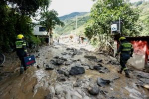 Colombia National Police rescue officers walk at an area affected by a landslide which left several casualties and other injured, in Quetame, Colombia, July 18, 2023. REUTERS/Santiago Molina