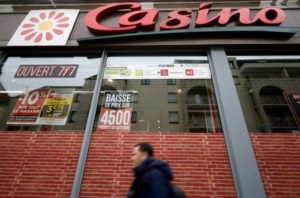 FILE PHOTO: A logo of French retailer Casino outside a Casino supermarket in Nantes, France, February 2, 2023. REUTERS/Stephane Mahe/