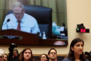 FILE PHOTO: Federal Trade Commission (FTC) Chair Lina Khan listens as House Judiciary Chairman Jim Jordan (R-OH) speaks before a House Judiciary Committee hearing on “Oversight of the Federal Trade Commission,” on Capitol Hill in Washington, U.S., July 13, 2023. REUTERS/Kevin Wurm/File Photo