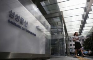 FILE PHOTO: An employee walks past a logo of Samsung C&T Corp at the company’s headquarters in Seoul, South Korea, July 16, 2015. REUTERS/Kim Hong-Ji/File Photo