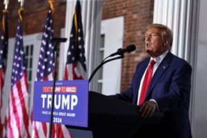 Former U.S. President Donald Trump delivers remarks during an event