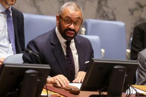 James Cleverly, Secretary of State for Foreign, Commonwealth and Development Affairs addresses the U.N. Security Council during a meeting on Artificial intelligence at U.N. headquarters in New York City, U.S., July 18, 2023. REUTERS/Brendan McDermid