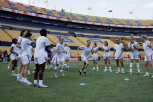 FILE PHOTO: Soccer Football – Concacaf Women Championship – Semi Final – United States v Costa Rica – Estadio Universitario, Monterrey, Mexico – July 14, 2022 United States players during the warm up before the match REUTERS/Daniel Becerril/File Photo