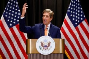John Kerry, the U.S. special envoy on climate issues, gestures as he attends a press conference in Beijing, China, July 19, 2023. REUTERS/Thomas Peter