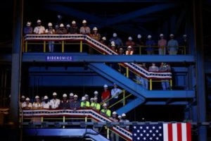 Employees stand as U.S. President Joe Biden visits Philly Shipyard in Philadelphia, Pennsylvania, U.S., July 20, 2023. REUTERS/Evelyn Hockstein