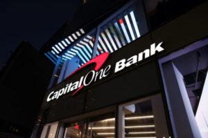 Signage is seen outside a Capital One Bank in Manhattan, Signage is seen outside a Capital One Bank in Manhattan, New York, U.S., November 12, 2021. REUTERS/Andrew Kelly Post navigation Previous: Capital One Financial beats profit estimates on higher interest income