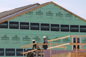 Workers stand on the frame of a building at Medford Walk by D. R. Horton, a home construction company, in Medford, New Jersey, U.S., May 23, 2022. REUTERS/Andrew Kelly/File photo
