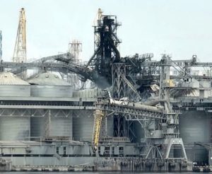 A view shows a grain terminal in a sea port damaged during Russian missile and drone strikes, amid Russia’s attack on Ukraine, in an undisclosed location in Odesa region, Ukraine July 19, 2023. Ukrainian Infrastructure Ministry via Facebook/Handout via REUTERS