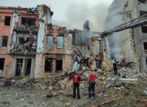 Rescuers work at a site of a residential building heavily damaged by a Russian missile attack, as Russia’s attack on Ukraine continues, in Mykolaiv, Ukraine July 20, 2023. REUTERS/Viktoria Lakezina