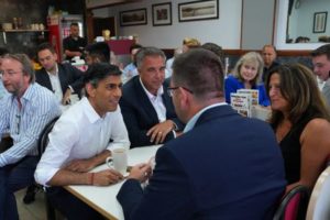 UXBRIDGE, ENGLAND – JULY 21: Prime Minister Rishi Sunak visits Uxbridge to congratulate Conservative Party candidate, Steve Tuckwell, after he won the Uxbridge and South Ruislip by-election, on July 21, 2023 in Uxbridge, Britain. Carl Court/Pool via REUTERS