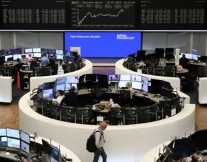FILE PHOTO: The German share price index DAX graph is pictured at the stock exchange in Frankfurt, Germany, July 20, 2023. REUTERS/Staff