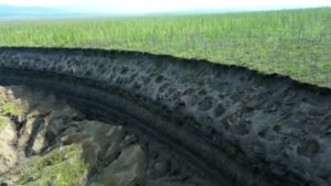 A view of the Batagaika crater, as permafrost thaws causing a megaslump in the eroding landscape, in Russia’s Sakha Republic in this still image from video taken July 11 or 12, 2023. Reuters TV via REUTERS