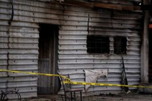 A view shows part of the scene where a man threw a Molotov cocktail bomb after being kicked out of a bar for bad behavior, leaving several victims, according to Sonora state authorities, in San Luis Rio Colorado, Mexico July 22, 2023. REUTERS/Victor Medina