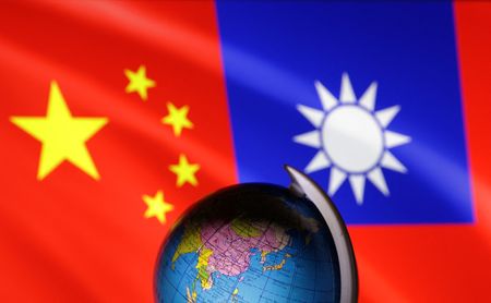 Illustration shows Globe, Chinese and Taiwanese flags