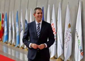 Australian Treasurer Jim Chalmers poses for a photograph as he arrives to attend a G20 finance ministers’ and Central Bank governors’ meeting at Gandhinagar, India, July 18, 2023. REUTERS/Amit Dave/File Photo