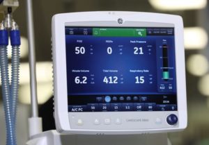 FILE PHOTO: A GE Carescape R860 ventilator is displayed at a GE Healthcare manufacturing facility in Madison, Wisconsin, U.S. April 21, 2020. REUTERS/Daniel Acker/File Photo