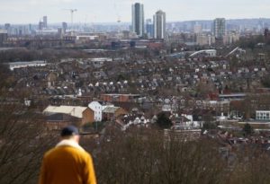 Rows of houses lie in front of the Canary Wharf skyline in London, Britain, March 19, 2023. REUTERS/Henry Nicholls/File Photo