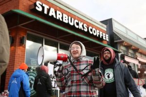 FILE PHOTO: Starbucks U.S. workers at 100 stores hold one-day