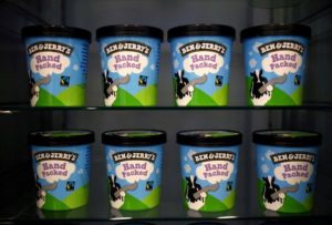 FILE PHOTO: Ice creams of Ben & Jerry’s, a Unilever brand, are seen at their shop in London, Britain, October 5, 2020. REUTERS/Hannah McKay/File Photo